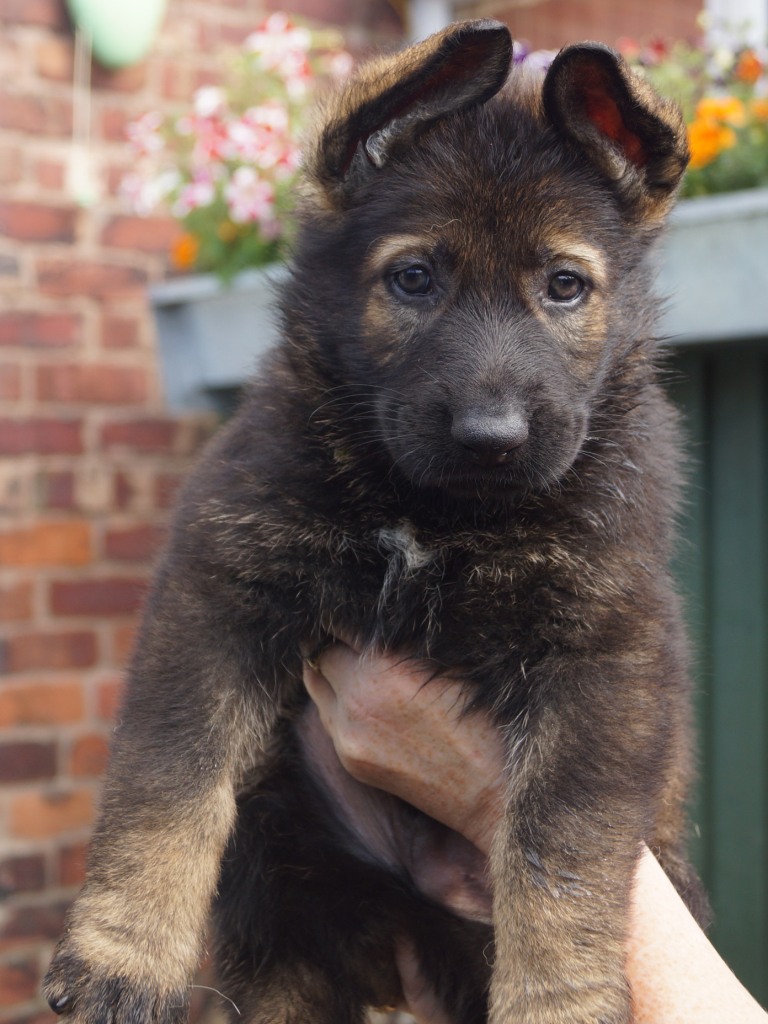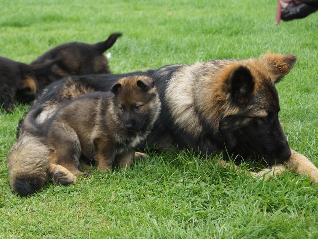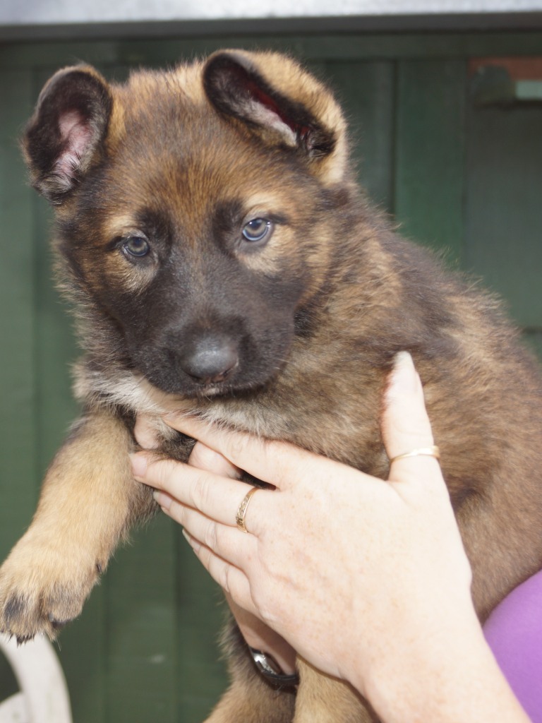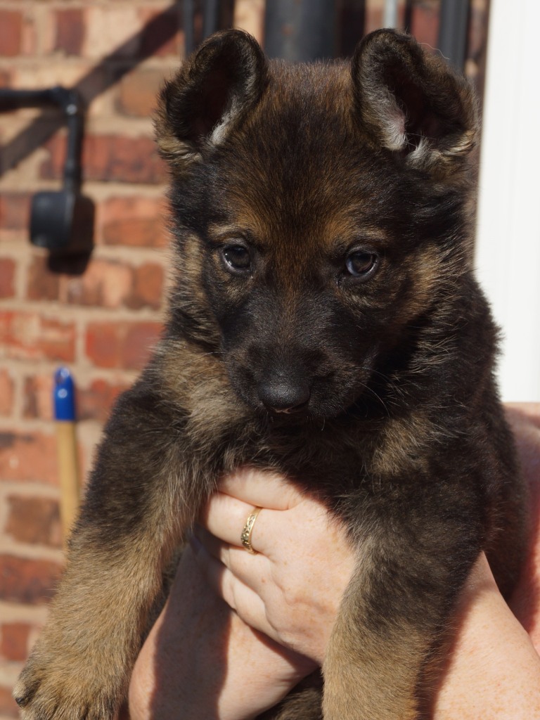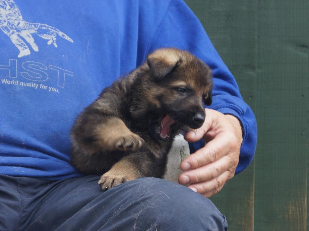 Following on from our very successful F litter we decided to use the same sire with Jade. Kai has qualified for the British Team in the WUSV World Schutzhund Championships 2012 being held in Austria later this year. He also got the best ever obedience score in the UK Nationals Schutzhund Championship 2011. This shows his incredible working ability which he looks to be passing on to his progeny. You can see Kai in the new Batman film. Mixed with Jade's drive, steely determination and strength this litter should be our best ever.