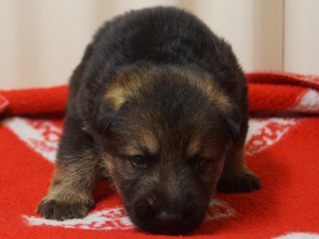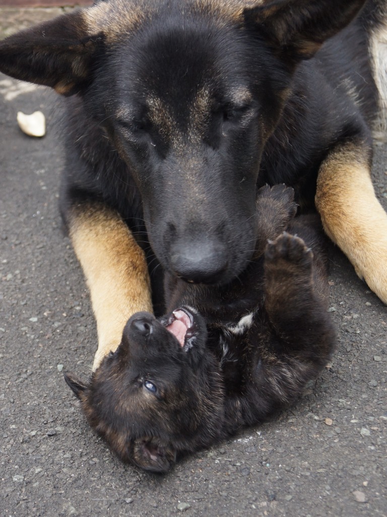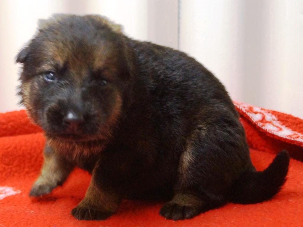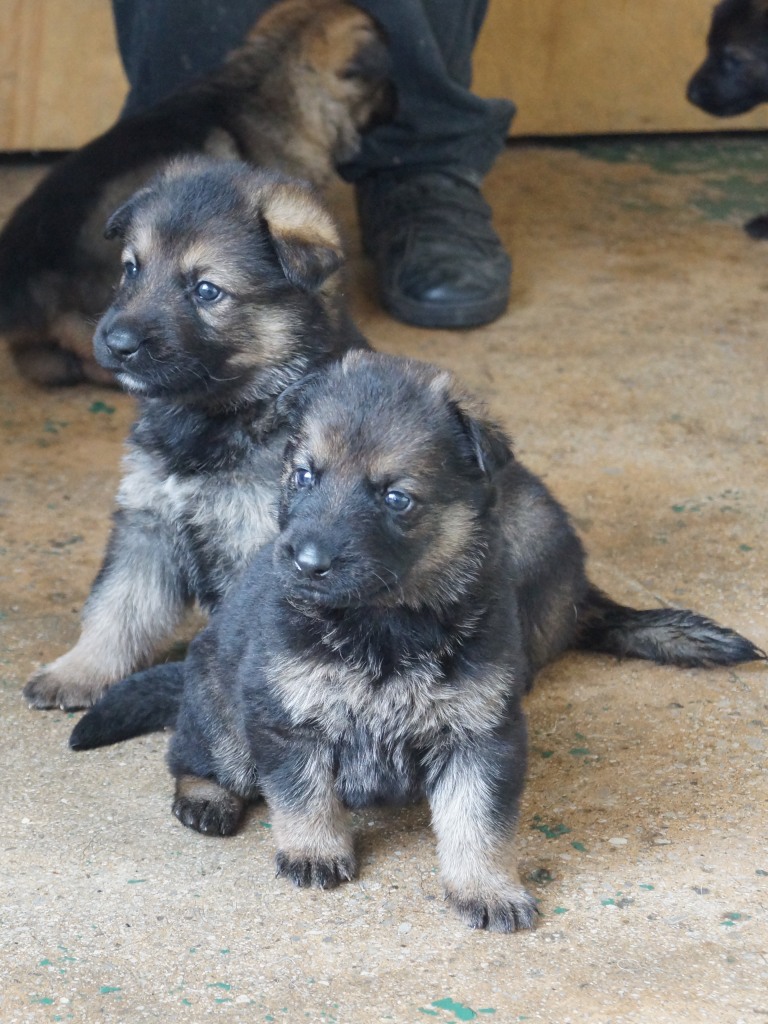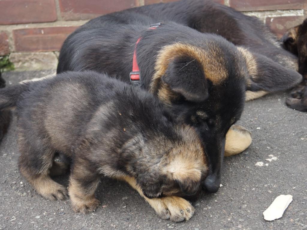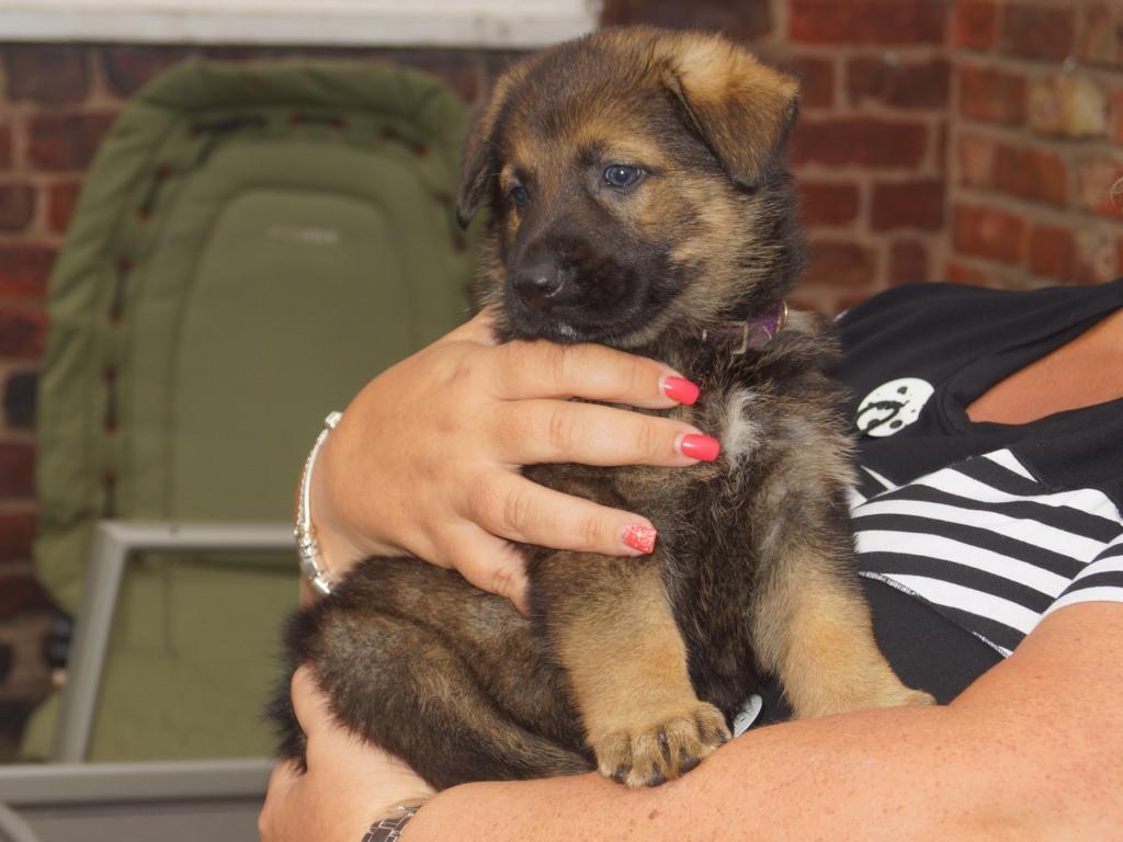 Following on from our very successful F litter we decided to use the same sire with Jade. Kai has qualified for the British Team in the WUSV World Schutzhund Championships 2012 being held in Austria later this year. He also got the best ever obedience score in the UK Nationals Schutzhund Championship 2011. This shows his incredible working ability which he looks to be passing on to his progeny. You can see Kai in the new Batman film. Mixed with Jade's drive, steely determination and strength this litter should be our best ever.