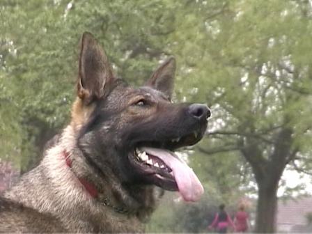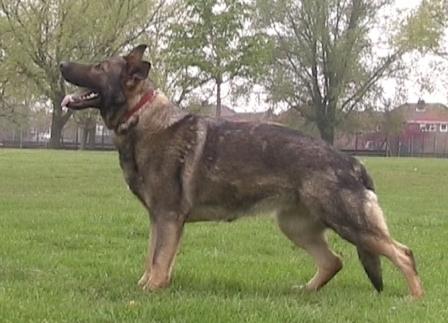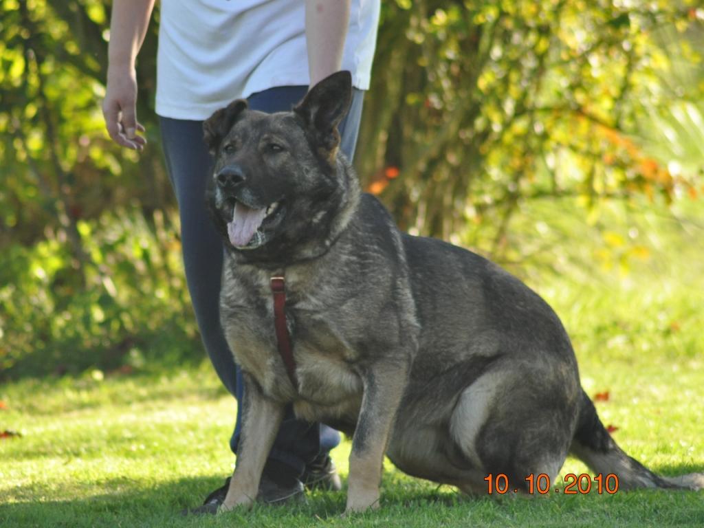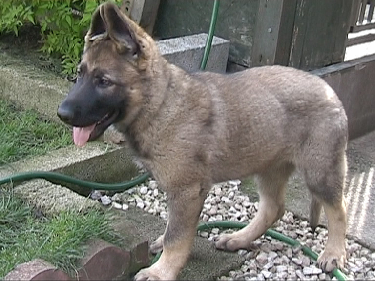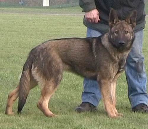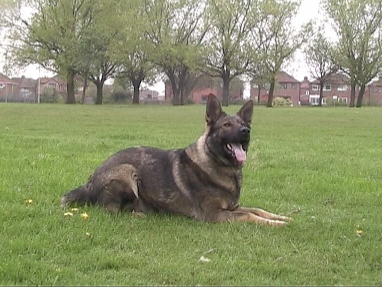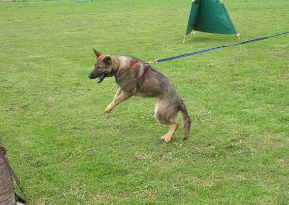 Then at around 10 months old all that changed. She started challenging Leo and Tasha for pack leader and no matter how many times they tried to put her in her place she would just get back up and try again. She is as tough as old boots, but with a very gentle and loving nature. We took her out on the Schutzhund field and everything seemed to click in to place. She certainly wowed us, and since then she has gone from strength to strength. She is very fast and agile, highly confident and very quick to learn. She has made a great mother, passing on her confident but loving nature.