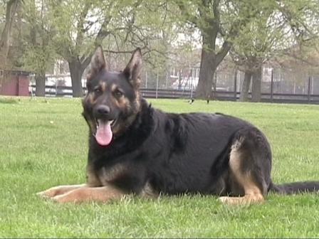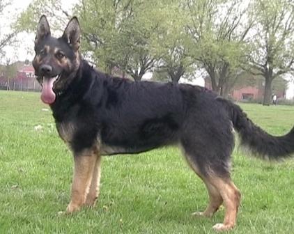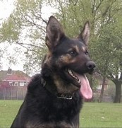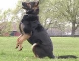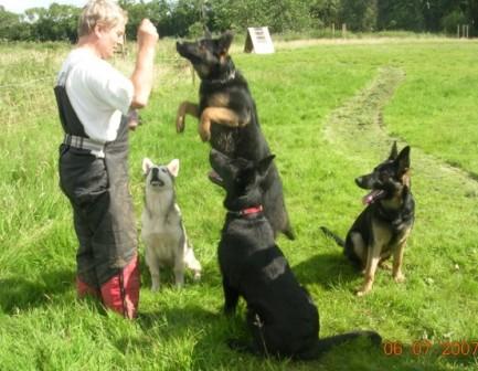 Jodie was born 22nd November 2006. She is from our B litter (out of Tasha). Spirited, loving and fearless. When we started her schutzhund training - wow - what a dog!! She is agile, fast and very quick to learn. She has her mother's love of work and of the ball, which makes obedience training seem more like fun than work, but you have to be quick! From day one she stood out from the rest of the litter, with her wavey hair. All the rest of the litter had coats like smooth velvet, while her coat was more like crushed velvet, no doubt she couldn't keep still, even in the womb. She is fast and agile, always on the go, first out the kennel and always the last one back in. As you can see from the picture below, everyone else is content to sit and wait for the treat, not Jodie, she's the one in the air.
