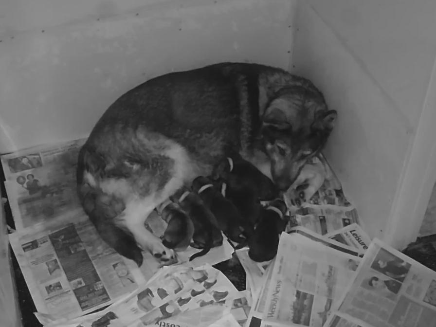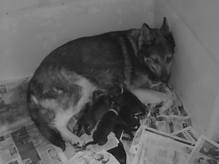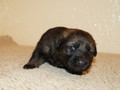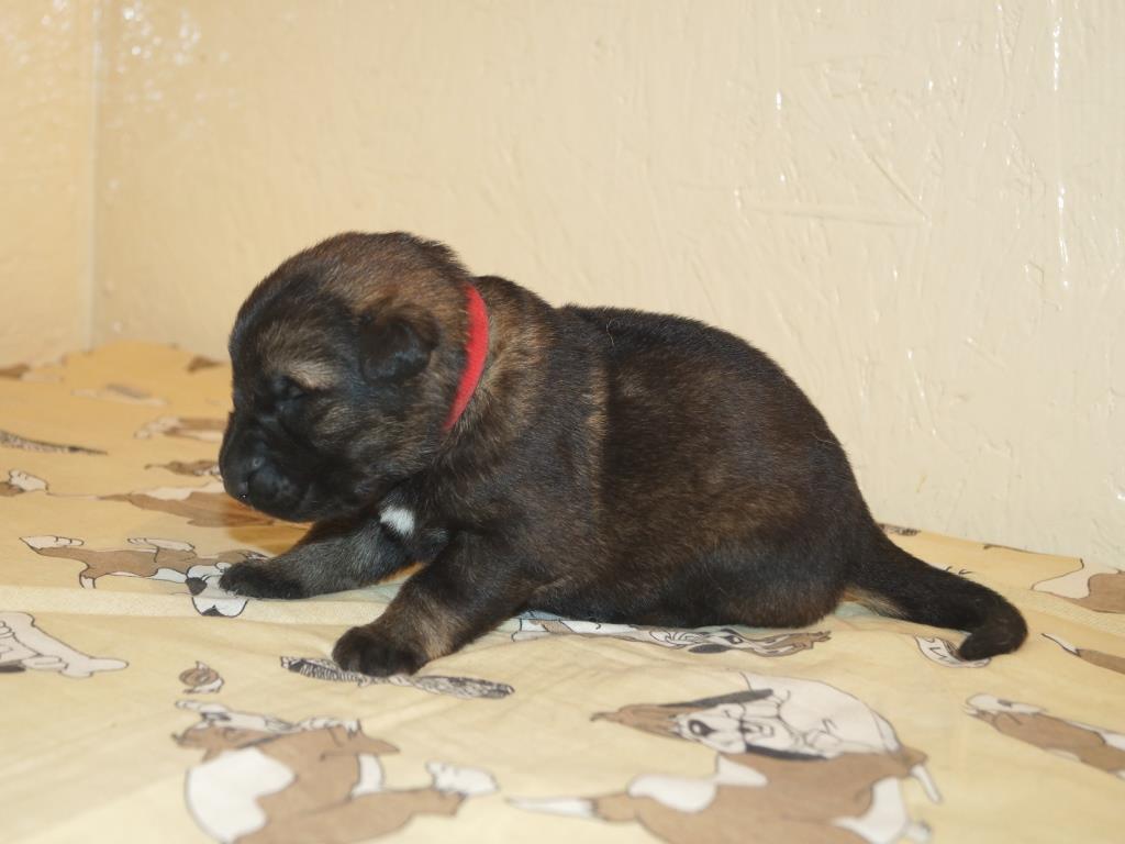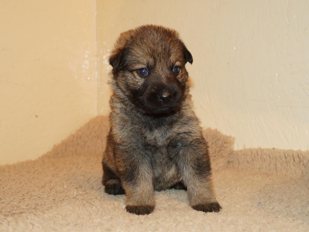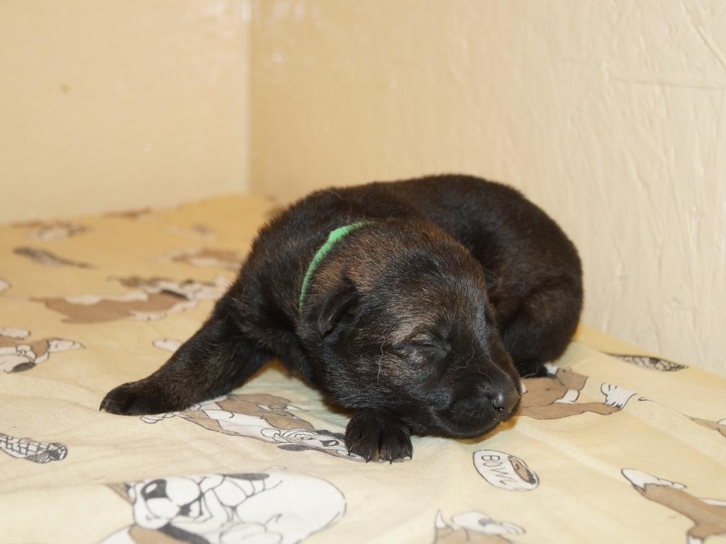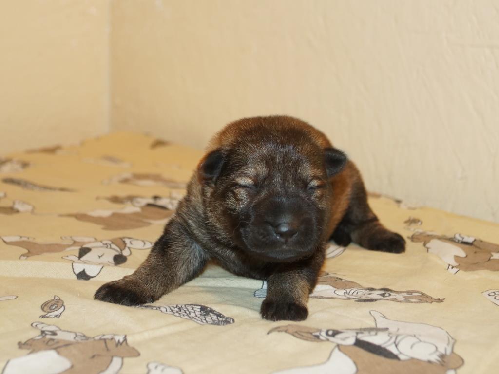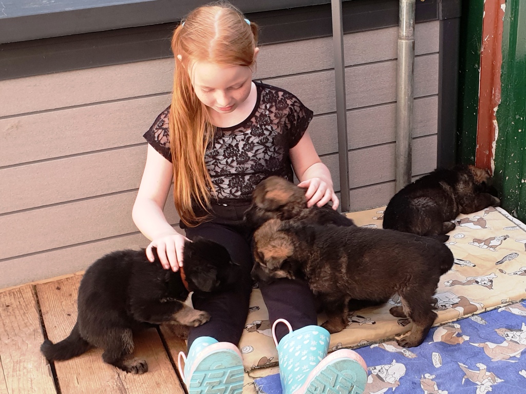 The pups are 3 weeks old. They still spend most of their time sleeping but are quick to waken when they hear mum come in to check on them. They are now spending the day outside in the puppy run. Their teeth are coming through and we are now starting to wean them off mum.