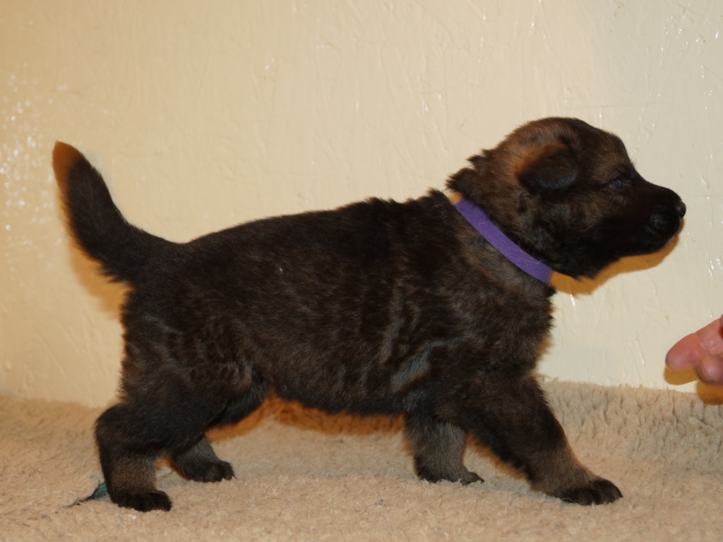 Jeri has produced another great litter. 4 girls & 2 boys and all are beautiful dark sables. Both parents are from excellent imported working lines, and the pups should grow into excellent dogs suitable for working/sports or as a family pet.