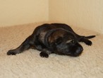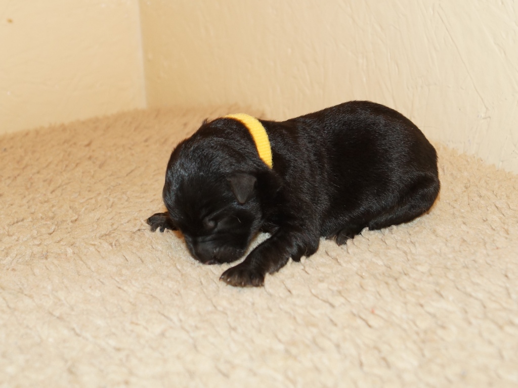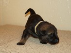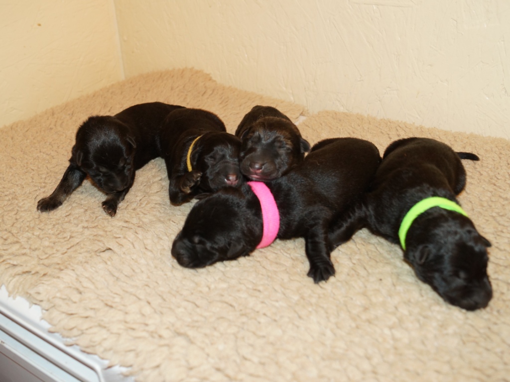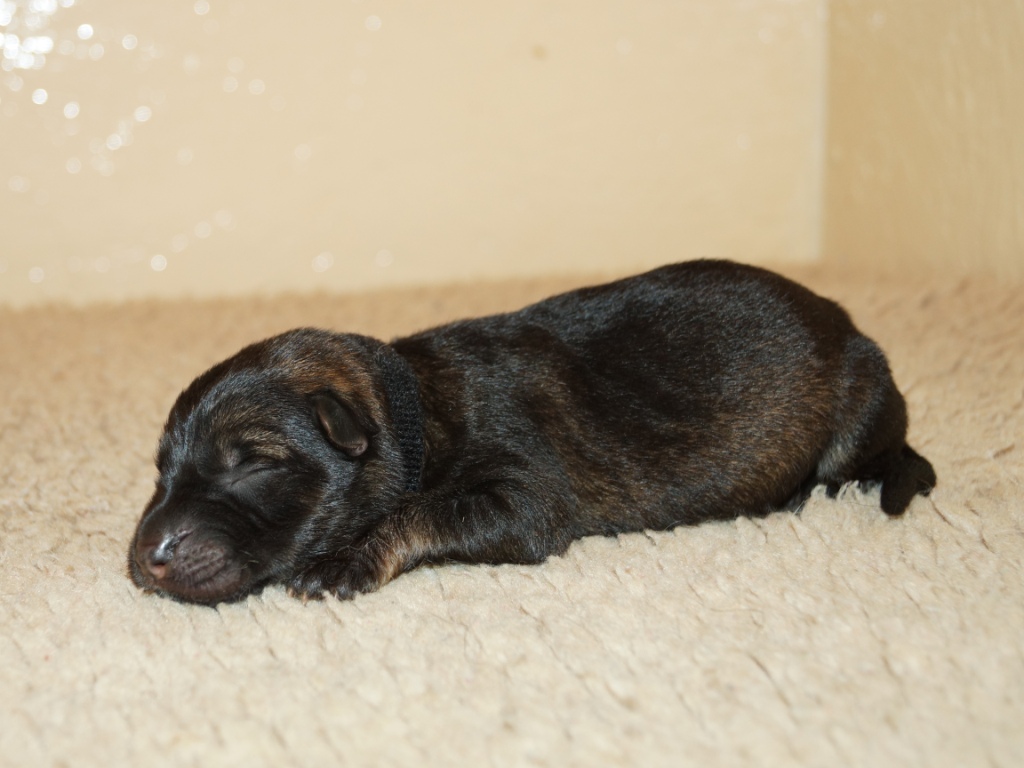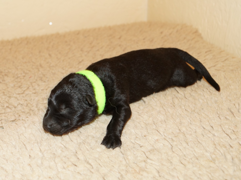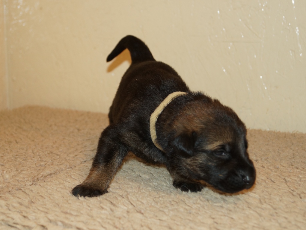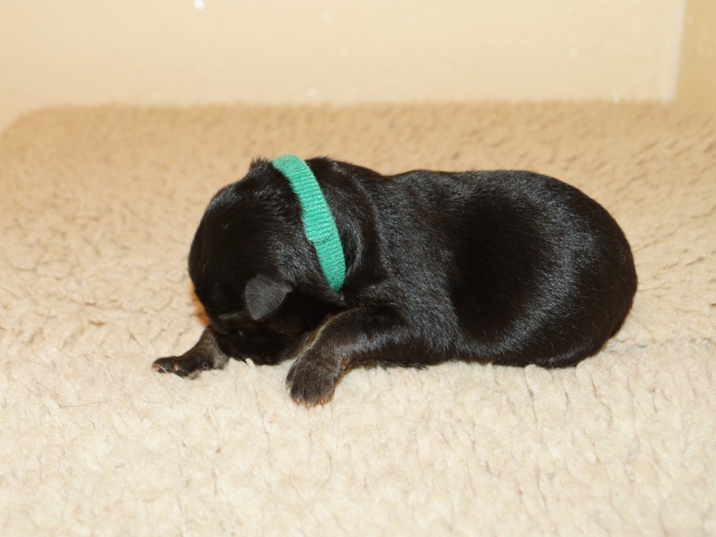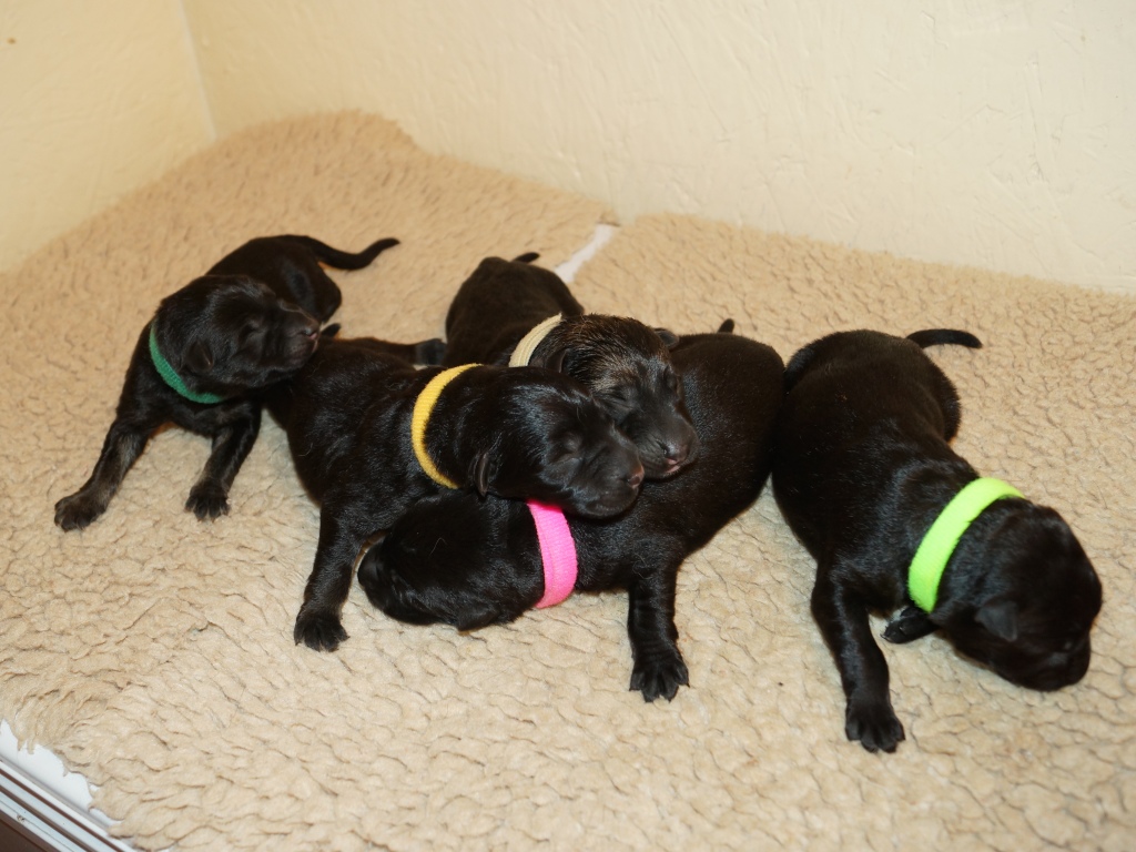 The pups are 2 weeks old and although they may not look much different to last week they are growing stronger and bigger each day. They are starting to walk around and eyes are now opening. They are now going on their own to the paper to toilet. They are now starting to interact with each other and know when we come in it means extra food and quickly make their way over. The bottle off us is not really needed as Mum more than takes care of the feeding but it makes us feel part of the new family and prepares them for weaning off mum.