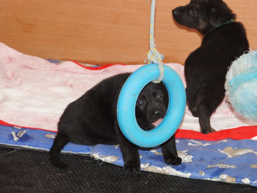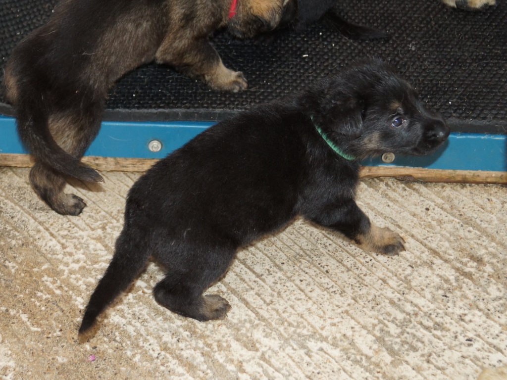 The pups are now 7 weeks old and this is our last week with them all before they start going off to their new homes. Back to the vets tomorrow for their microchip and final check up. It is great to watch them, chasing across the garden, play fighting with other and the big dogs, and doing what pups do best having fun.