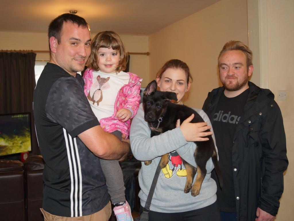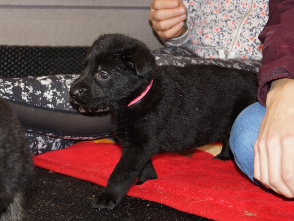 The pups at 4 weeks old. The last week has been a big week for the pups. They are now in the garden with the all the big dogs during the day and in the puppy run at night. They are now on puppy food with only top ups from mum, They have had visitors every day since Friday (that's why pics are late sorry) and today have even met with Gotham (M litter) and Lexie (N Litter) who will be big bro and sis for some. They have had a trip out to the vets for their first check up which everyone passed. We are really pleased with them as they took it all in their stride.