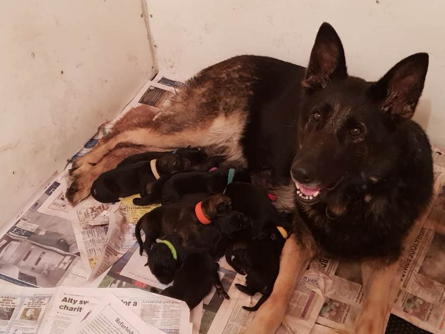 Jazz has produced a lovely litter. 5 girls & 4 boys with a mix of blacks, bi's and dark sables. Both parents are from top class working lines, and the pups should grow into excellent dogs suitable for working/sports or as a family pet.
